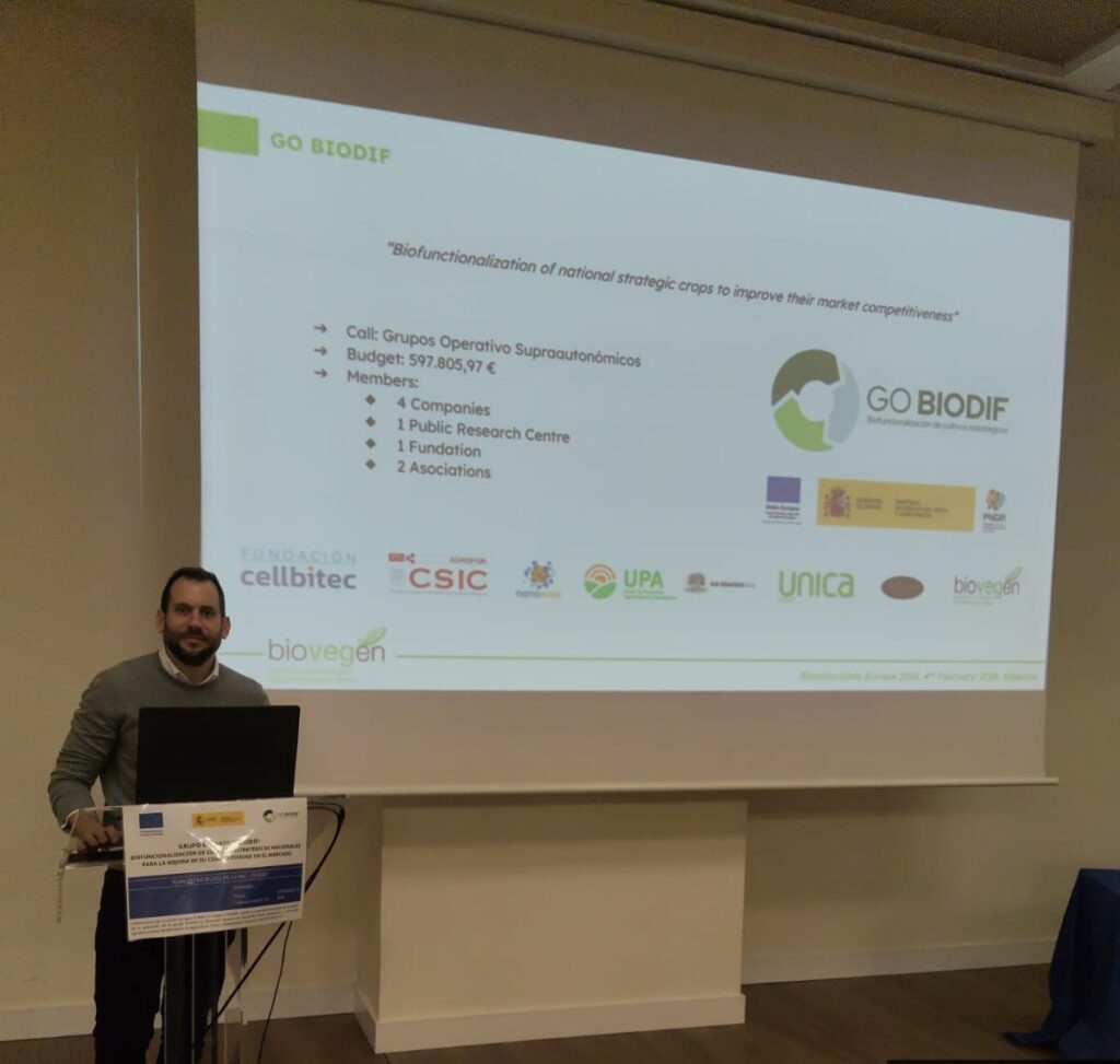 On February 4, 2026, BIOVEGEN participated in «Biostimulants Europe 2026» with the presentation «BIOVEGEN: Public-Private Collaborations as R&D Service Platform Providers in Plant Biotechnology».The event, held in Valencia, brought together industry leaders, researchers, scientists, and professionals from the biostimulants sector. It also served as a platform for knowledge exchange, networking, and discussions on the latest advances, challenges, and opportunities in the field of biostimulants. Thanks to BIOVEGEN's collaboration with the event organizers, BIOVEGEN partners benefited from special participation conditions. During the event, BIOVEGEN presented the BIODIF and SIMBIOLIVA Operational Groups in which it currently participates.