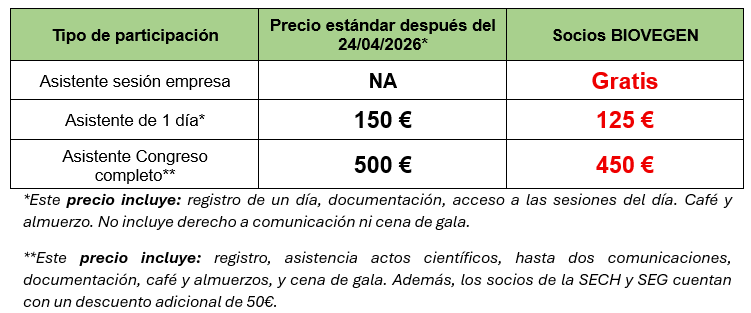 Condiciones especiales para socios BIOVEGEN