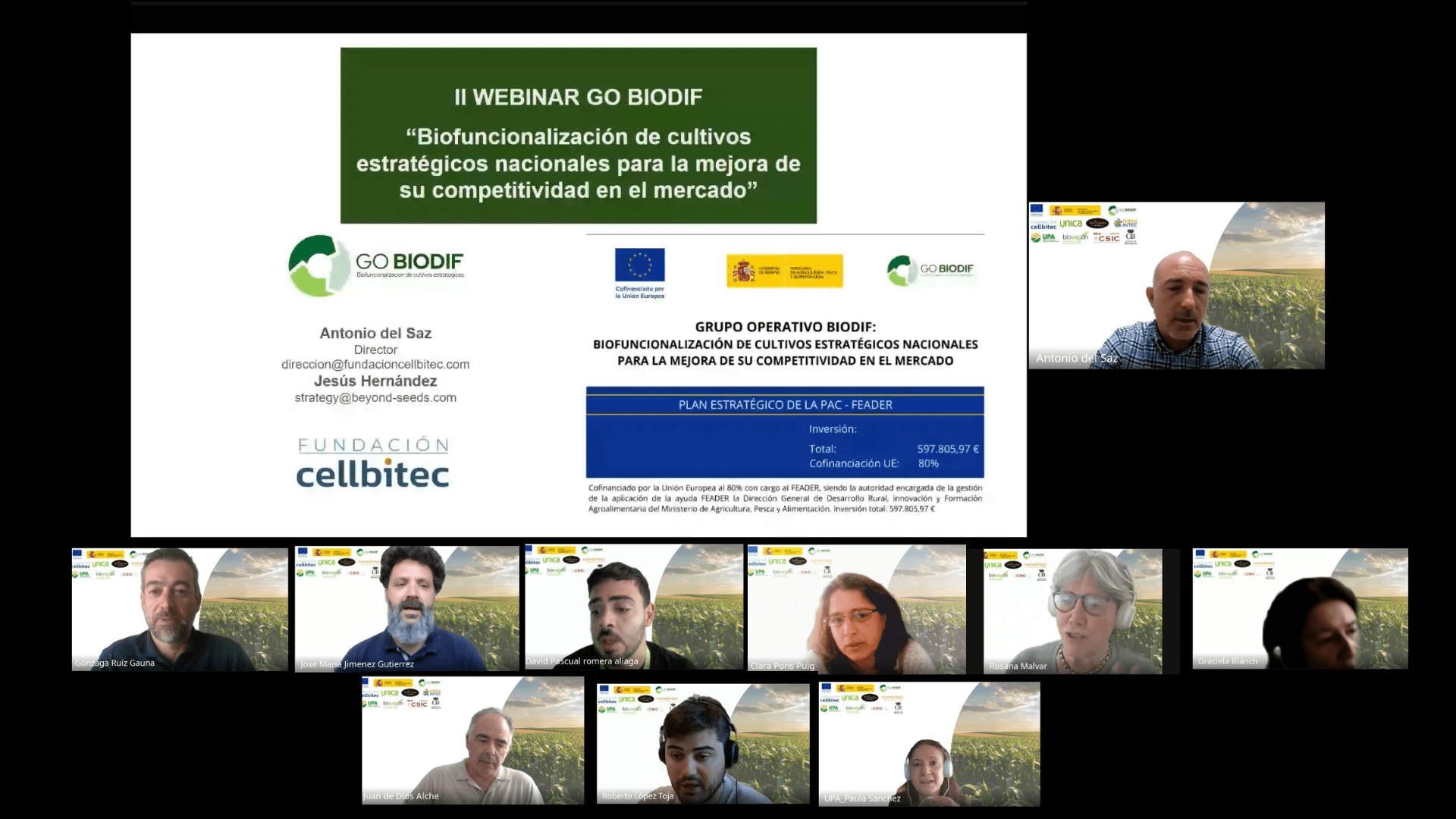 El pasado 22 de abril de 2026 se celebró el «II WEBINAR GO BIODIF: biofuncionalización de cultivos estratégicos para la mejora de su competitividad en el mercado«, un evento dedicado a la presentar los avances de este proyecto innovador y sus miembros.